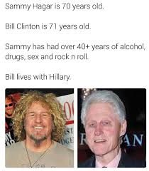 Recently Sammy Hagar shared a post on his official Instagram page revealing that the hilarious meme was just sent to him by drummer Taylor Hawkins as well as sharing his own reaction to the meme and the age joke. Search discover and share your favorite Sammy Hagar GIFs. Im your new singer and its MY band puto. Sammys 68 Bills 69 Looks Like Rock-N-Roll Is EASIER On You Than HILLARY. Save and share your meme collection. The Red Rocker himself Sammy Hagar is up next for this edition of Tuesdays Memes. Samuel Roy Hagar born October 13 1947 also known as The Red Rocker is an American singer-songwriter musician and entrepreneur.