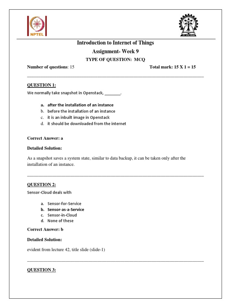 INTRODUCTION TO INTERNET OF THINGS WEEK 8 NPTEL ASSIGNMENT ANSWERS 2021. Introduction to internet of things nptel course 2021 week 5 quiz assignment solutions february 19 2021. EMBEDDED SYSTEMS ASSIGNMENT -5 ANSWERS NPTEL THE BEST. March 11 2021. INTRODUCTION TO INTERNET OF THINGS WEEK 8 NPTEL ASSIGNMENT ANSWERS 2021 March 11 2021. NPTEL Administrator IC SR 3rd floor IIT Madras Chennai - 600036 Tel. YOU WILL BE ELIGIBLE FOR A CERTIFICATE ONLY IF AVERAGE ASSIGNMENT SCORE 1025 AND EXAM SCORE 3075. 0 Feedback for Accepted Answers. INTRODUCTION TO INTERNET OF THINGS NPTEL COURSE 2021 WEEK 5 QUIZ ASSIGNMENT SOLUTIONS February 19 2021.